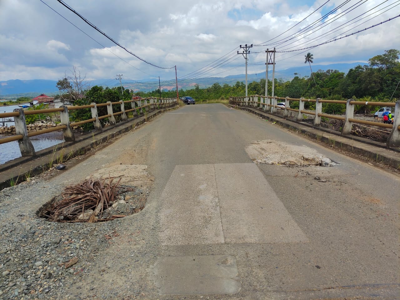 Warga yang melintas harus berhati hati apalagi kondisi Jembatan yang berlobang tidak terpasang Rambu dari pihak Pelaku jasa Dan Balai Jalan Nasional Provinsi Sulawesi Tengah terlihat erat kawat penahan yang terbentang di atas jembatan sudah mulai rapuh Apalagi ketika mengendarai kendaraan tidak berhati hati pasti akan terjatuh miris sekali.
