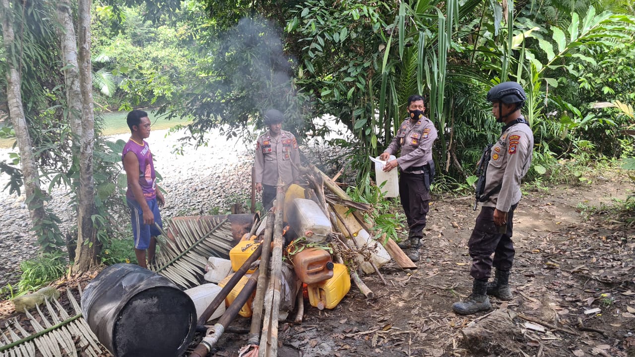 RadarNasional,Morowali-Petugas Kepolisian dari Polsek Bumi Raya menggerebek Lokasi tempat penyulingan minuman keras (miras) tradisional jenis Cap Tikus milik . PS (31 Tahun) di Dusun 4 Lamasea Desa Lasampi Kec. Bumi Raya, Sabtu (19/06/2021)