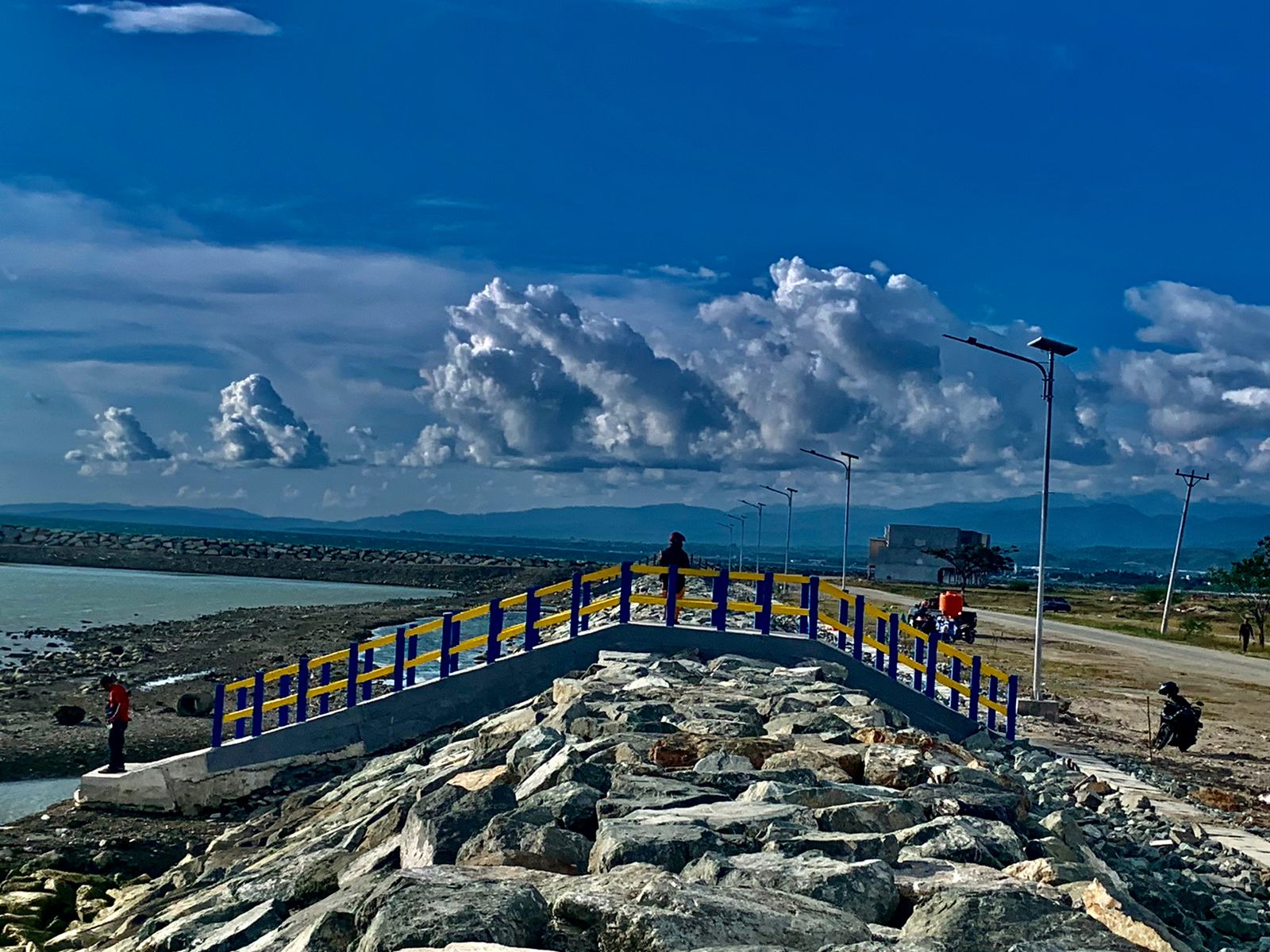 Selain membangun Tambatan Perahu PT.Adhi Karya.Tbk Konsisten membangun 4 Jembatan berbentuk setengah lingkaran diatas tumpukan batu .Berwarna kuning, biru tentu saja Jembatan tersebut menambah keindahan panorama pantai tersebut .