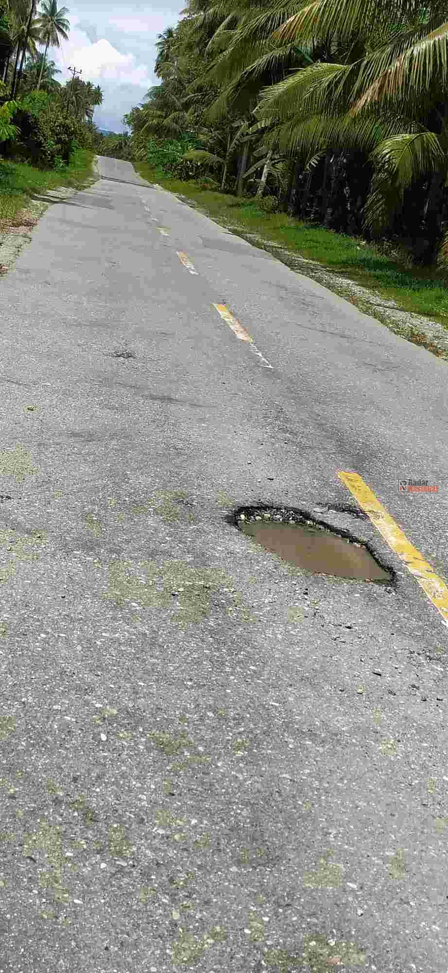 Salah satu contoh Dalam perjalan Poso Pesisir saat ini dibeberapa spot terlihat adanya beberapa ruas jalan rusak dan berlobang tentu sangat berbahaya.