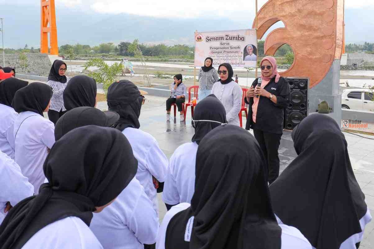 “Mak Ganjar hari ini mengadakan kegiatan senam zumba bersama mak-mak yang dihadiri oleh beberapa desa. Karena beberapa hari ini senam di sini lagi viral,” ujar Perwakilan Mak Ganjar Sulteng Fatma Amran.