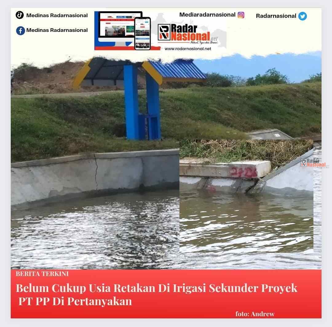 Pantauan di lokasi sebagaimana yang terlihat usai dikerjakan PT PP. Retakan yang terjadi asilnya, Dikhawatirkan semakin parah sehingga pasokan air ke lahan pertanian tidak maksimal lantaran saluran pembuang irigasi rusak. Terlebih, beberapa bulan ini intesintas hujan cukup besar.