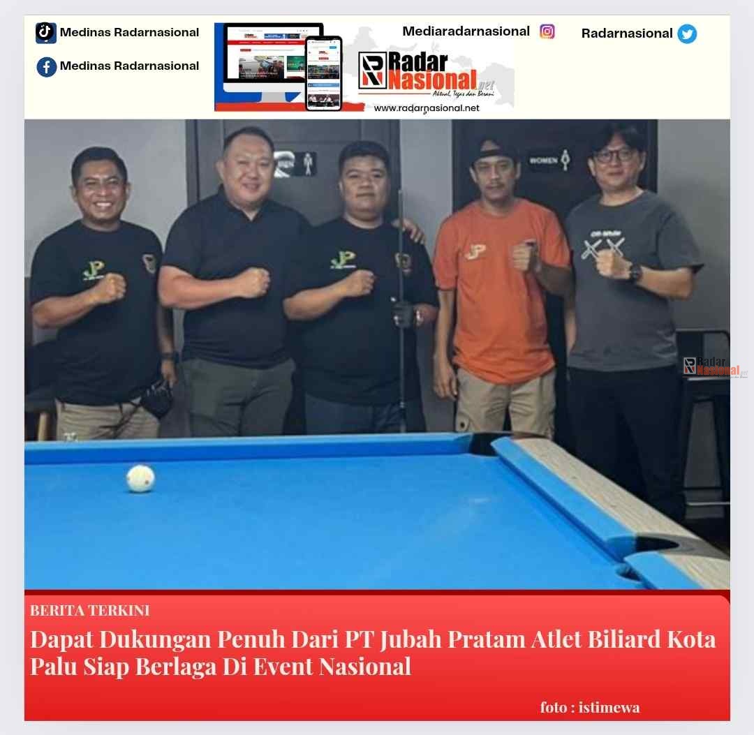Radarnasional, Palu– Ardin Winata, atlet biliard dari Kota Palu Provinsi Sulawesi Tengah, akan mengikuti event nasional yang diselenggarakan di kota Makassar dan Majene. Kegiatan ini mendapat dukungan penuh dari PT. Jubah Pratama.