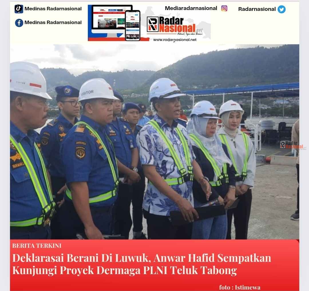 Radarnasional-Banggai-Anggota DPR RI komisi V Dr.Anwar Hafid, M.Si menyempatkan diri meninjau proyek Dermaga PLNI Teluk Lalong di Luwuk Kabupaten Banggai Sulawesi Tengah Sabtu (27/7-2024).