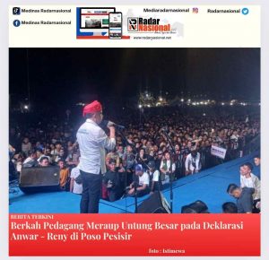 Radarnasional,Parimo – Pasangan calon Gubernur dan Wakil Gubernur Sulawesi Tengah 2024, Dr. Anwar Hafid, M.Si, dan dr. Reny Lamadjido, M.Kes, melanjutkan kampanye mereka di Bantaya, Parigi Moutong, pada Ahad (20/10/2024).