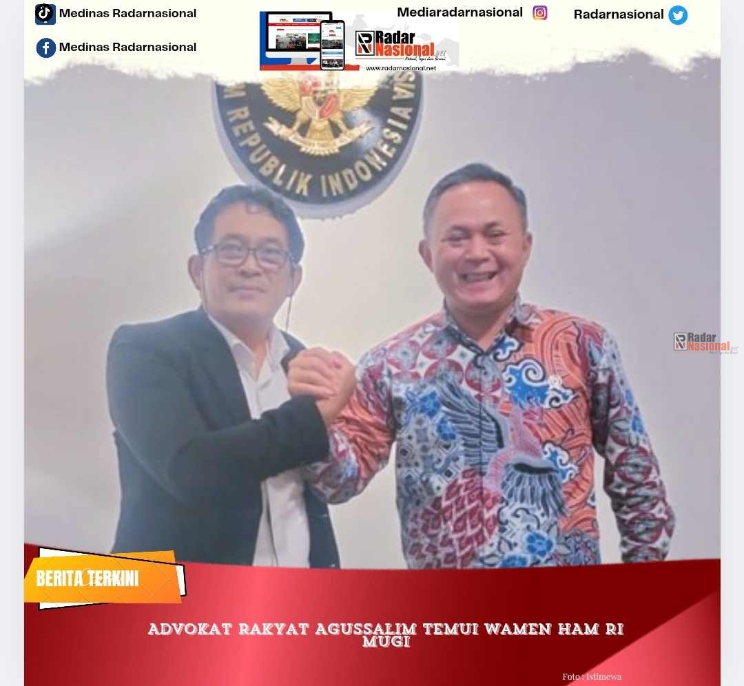Radarnasional – Advokat Rakyat Agussalim SH mengunjungi Wakil Menteri HAM RI, Mugiyanto Sipin, untuk membahas berbagai persoalan pelanggaran Hak Asasi Manusia (HAM) yang melibatkan konflik agraria, kerusakan ekologi, dan kasus perburuhan.