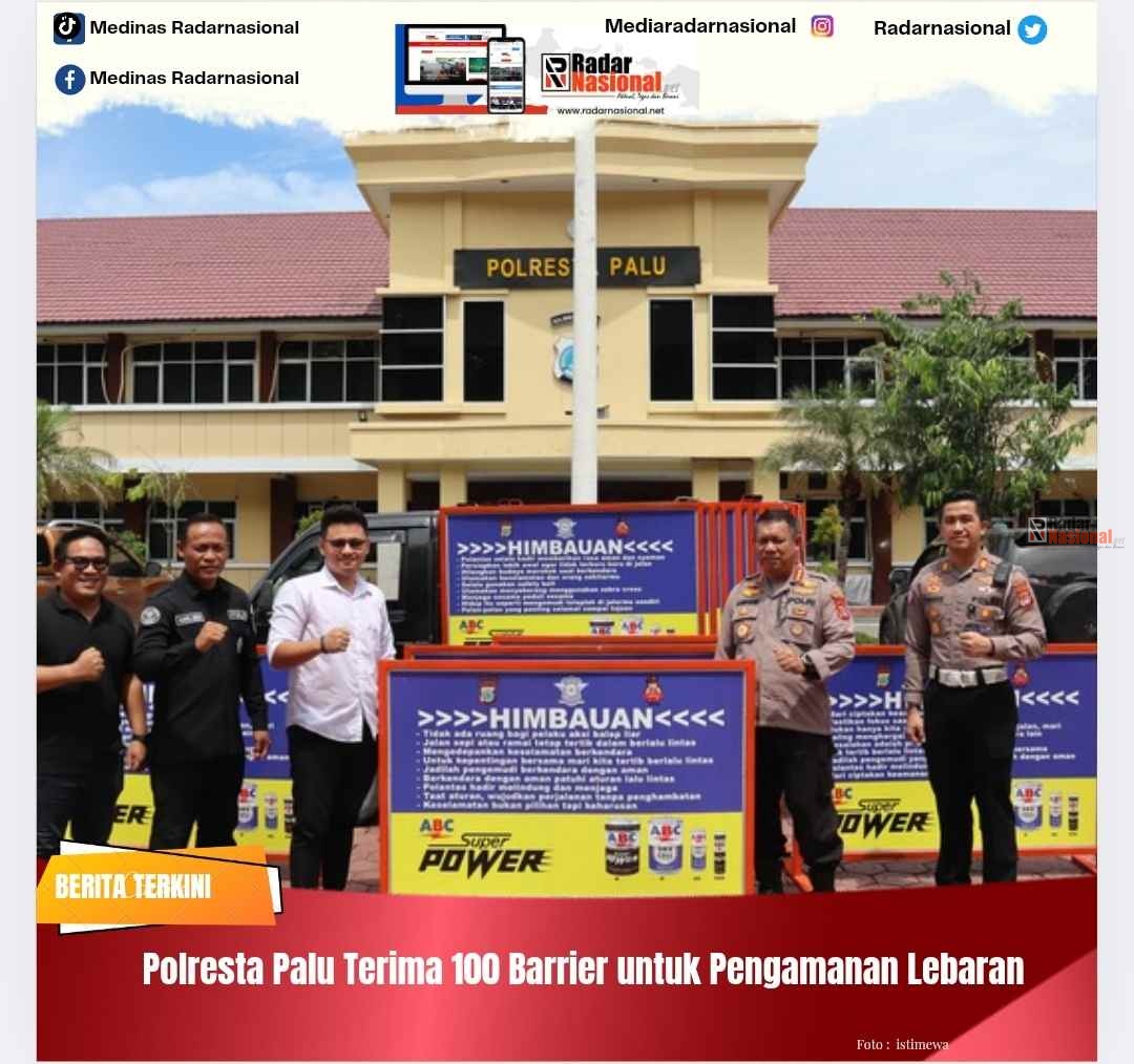 Polresta Palu Terima 100 Barrier untuk Pengamanan Lebaran