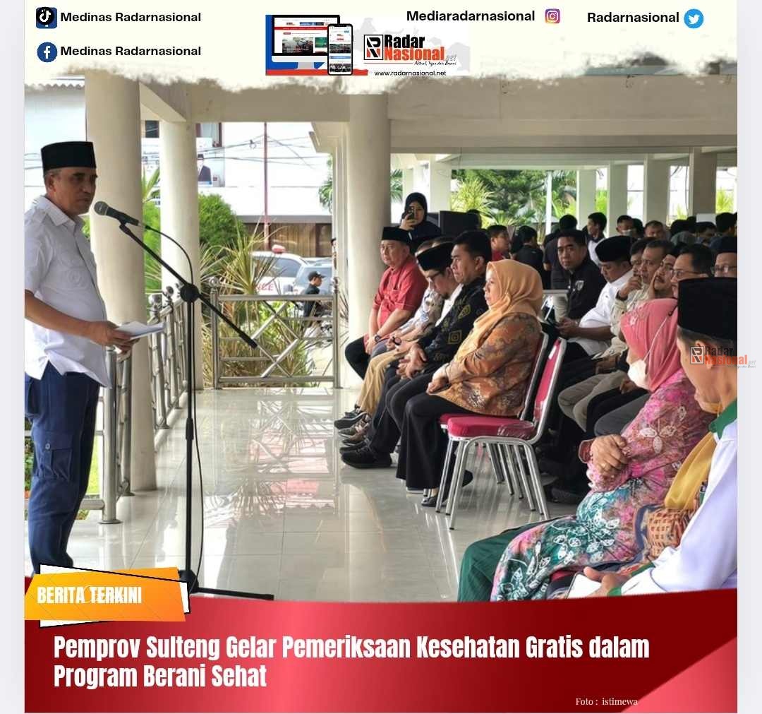 Radarnasional,Palu-Dalam melaksanakan program berani sehat, pemerintah provinsi laksanakan pemeriksaan kesehatan lingkup sekretariat kantor Gubernur Sulteng Jum’at (21/3-2025) di halaman belakang kantor itu.