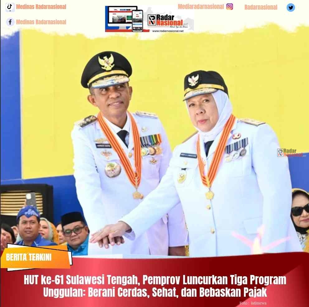 Mengusung semangat “Berani Membangun Sulawesi Tengah” dalam perayaan HUT ke-61 Sulteng, pemerintah provinsi secara resmi meluncurkankan tiga program unggulan sebagai kado HUT Sulteng ke-61 bagi seluruh masyarakat.