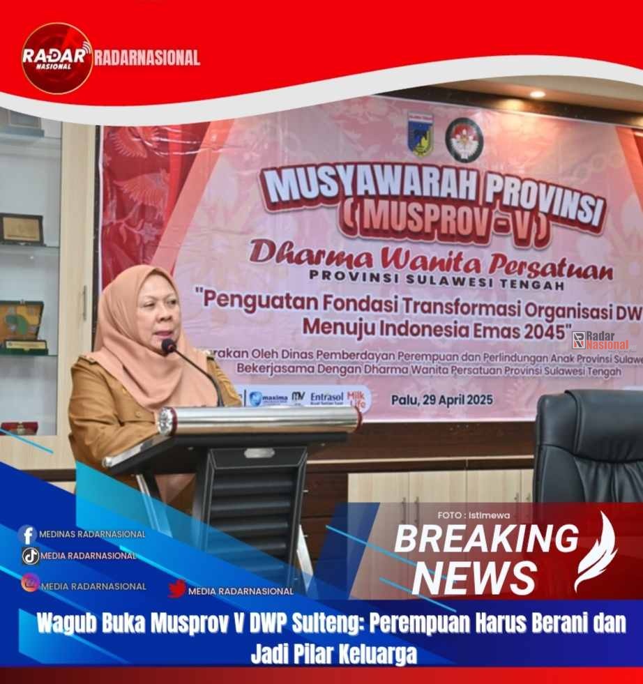 Wagub Buka Musprov V DWP Sulteng: Perempuan Harus Berani dan Jadi Pilar Keluarga