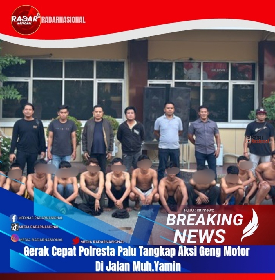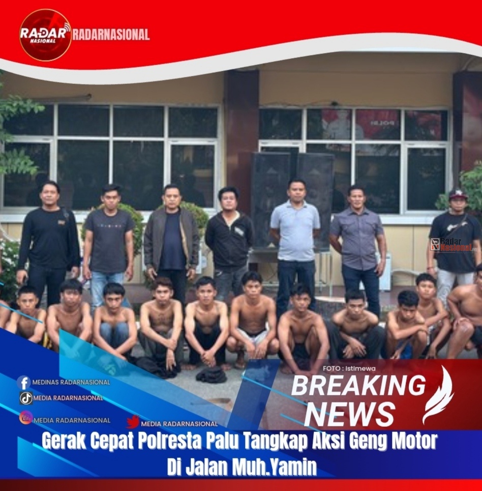 RADARNASIONAL,PALU – Aksi brutal geng motor yang sempat meresahkan masyarakat Kota Palu, di kawasan Jalan Muh. Yamin, akhirnya berhasil ditangkap oleh aparat kepolisian.