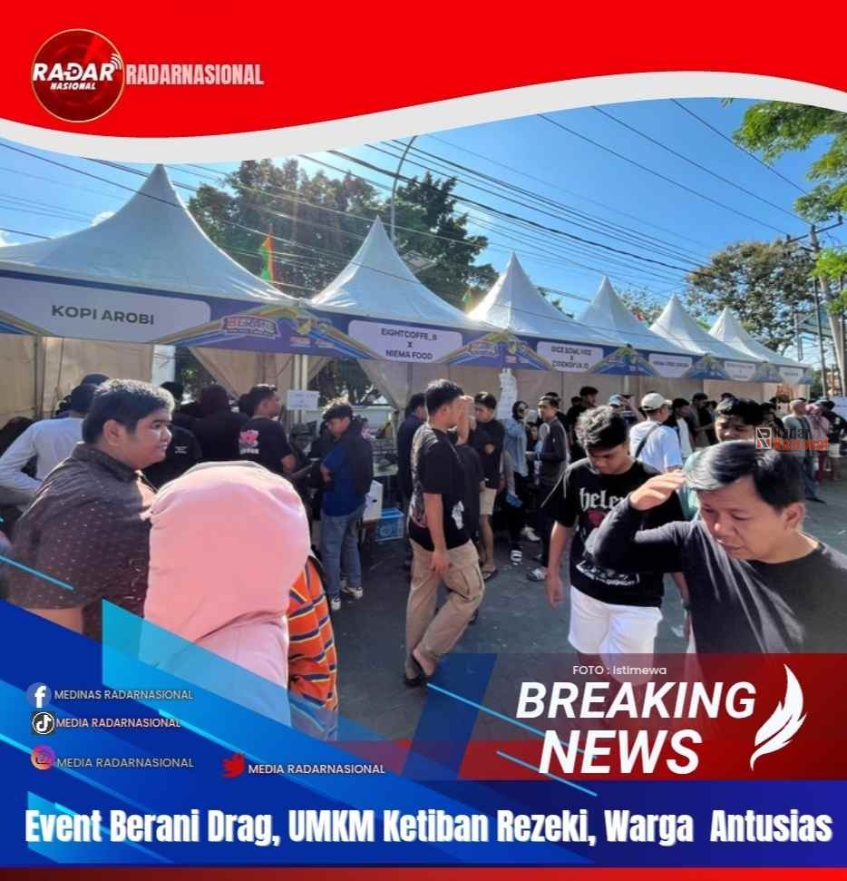 RADARNASIONAL,PALU – Gelaran Berani Drag yang berlangsung selama dua hari (3-4/5/2025) tak hanya menyedot perhatian para pecinta otomotif, tapi juga memberi angin segar bagi pelaku UMKM dan pedagang kecil di Kota Palu. Sejak hari pertama, ribuan pengunjung memadati lokasi acara, menciptakan suasana yang ramai sekaligus membuka peluang usaha.