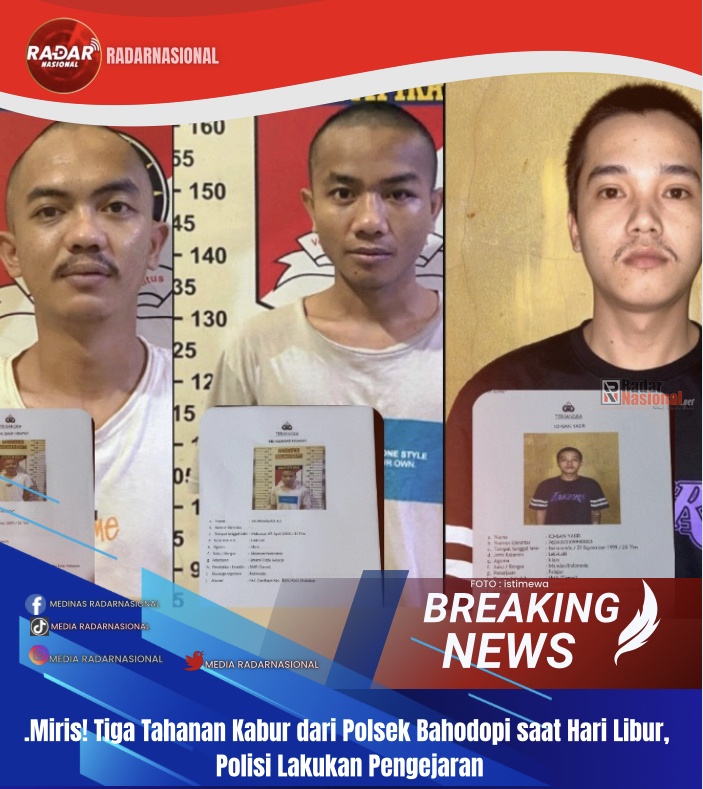 RadarNasional,Bahodopi, Morowali – Insiden mengejutkan terjadi pada Minggu petang, 13 Juli 2025, sekitar pukul 18.00 WITA, informasi ini diperoleh dari Terusan Whastaap yang dimana diketahui tiga orang tahanan dikabarkan berhasil melarikan diri dari ruang tahanan Polsek Bahodopi. Ketiganya diketahui kabur dengan cara merusak gembok sel tahanan.