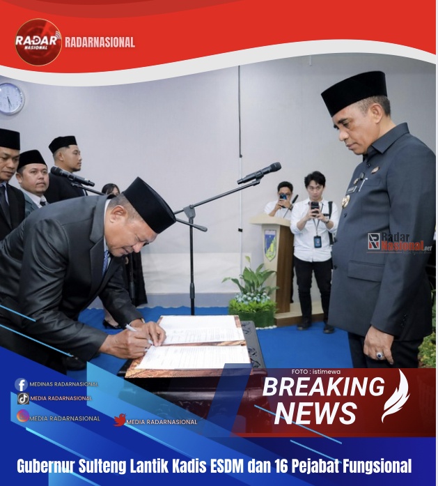 RADARNASIONAL,PALU – Gubernur Sulawesi Tengah H. Anwar Hafid melantik Ajenkris sebagai Kepala Dinas Energi dan Sumber Daya Mineral (ESDM) Provinsi Sulteng, bersama 16 pejabat fungsional lainnya di lingkungan Pemprov Sulteng. Pelantikan berlangsung di Aula Kantor ESDM Sulteng, Senin (21/7/2025).
