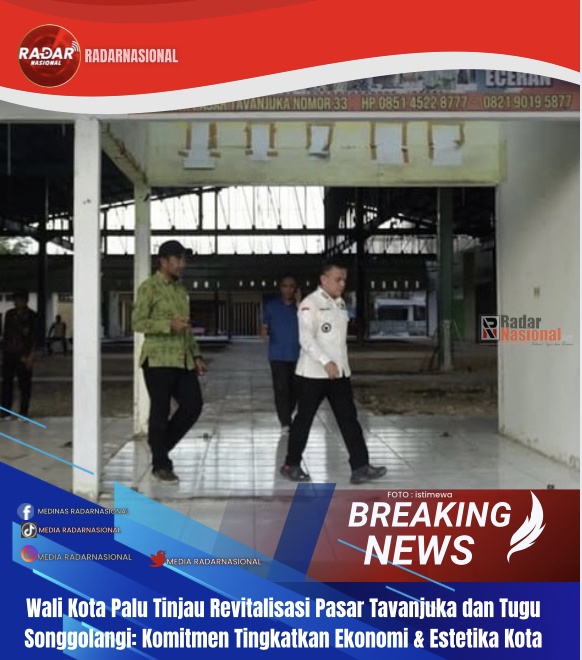 RADARNASIONAL,Palu— Wali Kota Palu, H. Hadianto Rasyid, SE, kembali menunjukkan komitmennya dalam membangun wajah baru Kota Palu. Pada Kamis (31/7/2025) pukul 17.00 WITA, ia meninjau langsung progres dua proyek strategis di Kecamatan Tatanga, yakni revitalisasi Pasar Tavanjuka dan bundaran Tugu Songgolangi di Jalan I Gusti Ngurah Rai.