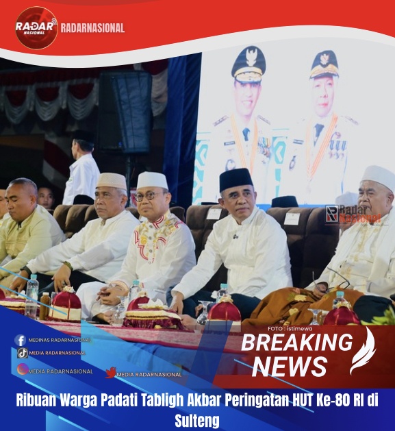 RadarNasional,Sulteng-Ribuan masyarakat memadati Lapangan Pogombo, Kantor Gubernur Sulawesi Tengah, Rabu malam (13/8/2025), untuk mengikuti tabligh akbar dalam rangka memperingati Hari Ulang Tahun (HUT) ke-80 Proklamasi Kemerdekaan Republik Indonesia.