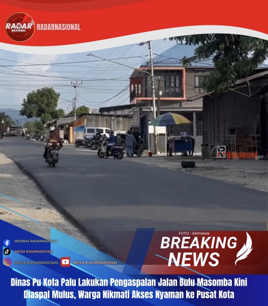 RadarNasional,Palu-Sebagian ruas Jalan Bulu Masomba yang sebelumnya rusak dan berlubang kini tampak mulus setelah dilakukan pengaspalan oleh pemerintah. Warga kini tak perlu lagi khawatir saat melintas di jalur ini, karena kondisi jalan sudah jauh lebih aman dan nyaman.