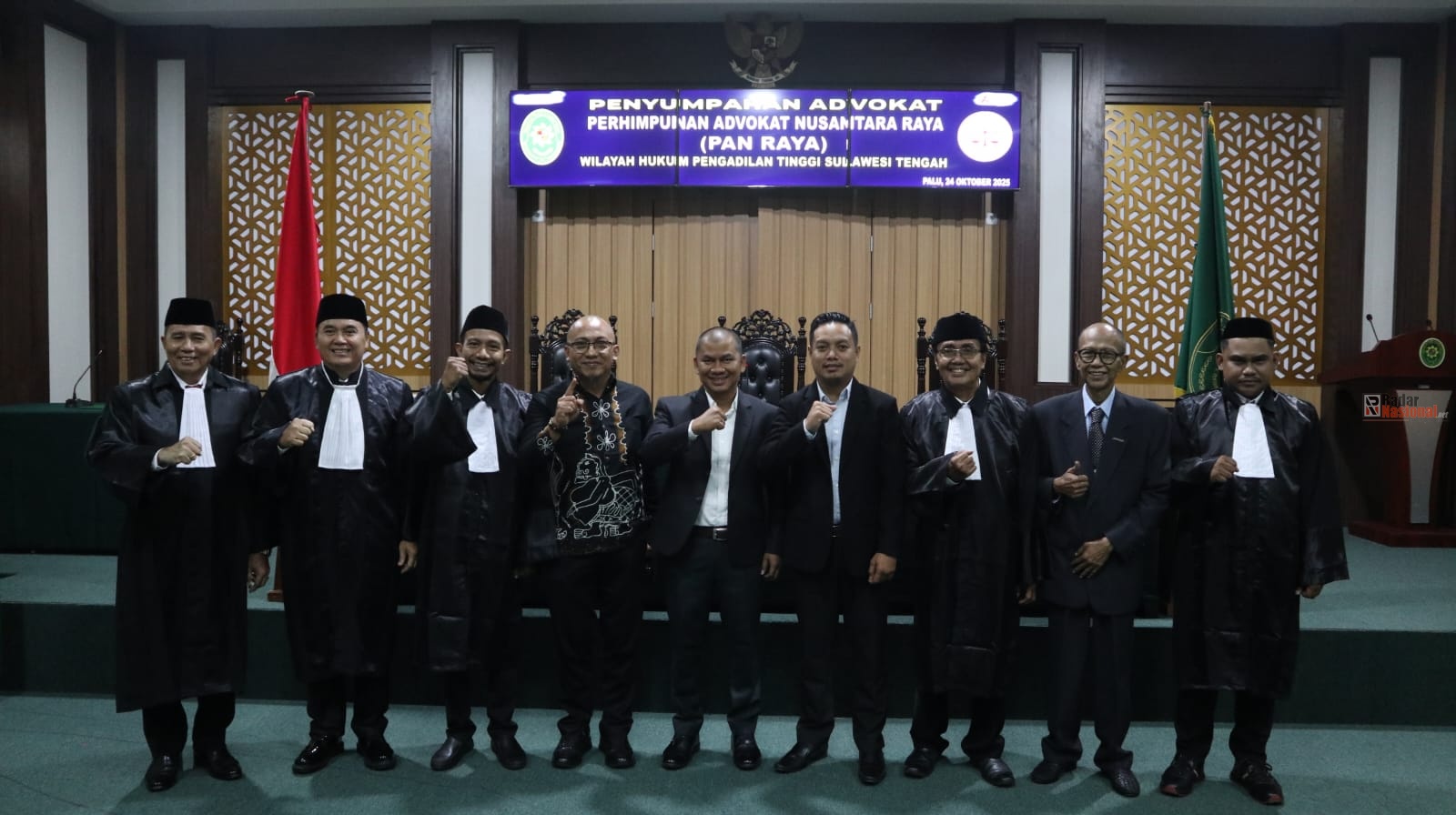 RadarNasional,Palu- Momen bersejarah bagi dunia hukum Sulawesi Tengah. Jumat, 24 Oktober 2025, menjadi hari yang tak akan dilupakan oleh keluarga besar Perhimpunan Advokat Nusantara Raya (PAN RAYA). Untuk pertama kalinya di daerah ini, lima advokat resmi diambil sumpahnya secara gratis tanpa dipungut biaya oleh Ketua Pengadilan Tinggi Sulawesi Tengah, menandai babak baru penegakan hukum yang berintegritas di bumi Tadulako.