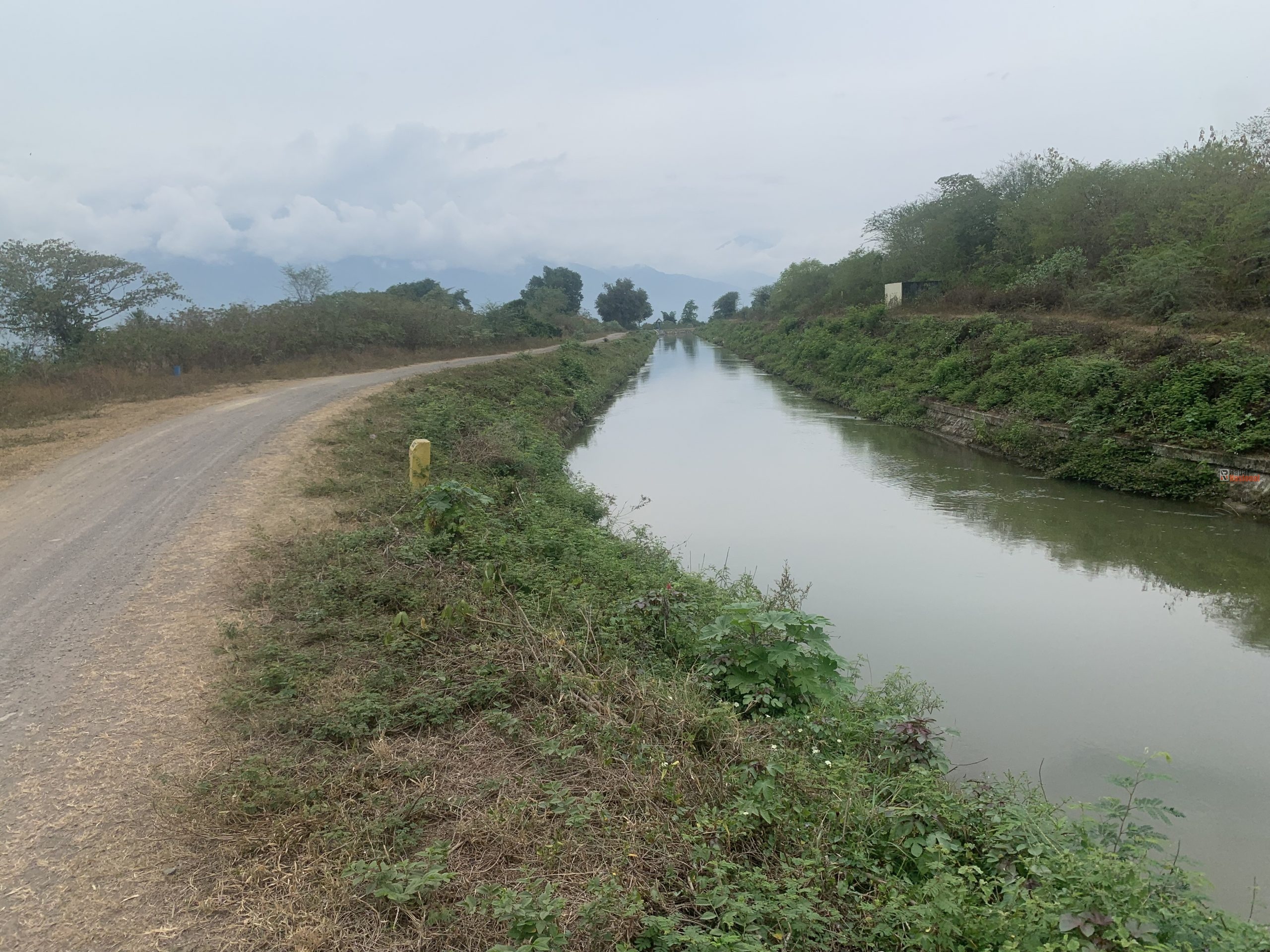 Foto : kondisi terkini kawasan irigasi yang dipenuhi semak belukar yang melekat di badan bangunan irigasi tanpa adanya penanganan
