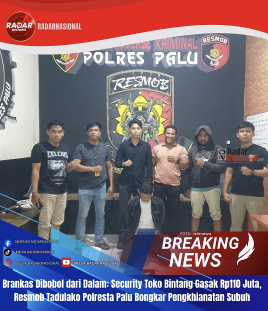 RADARNASIONAL,Palu — Keheningan subuh awal tahun 2026 di Kota Palu pecah oleh kejahatan yang lahir dari dalam lingkar kepercayaan. Toko Bintang, yang berlokasi di Jalan Moh. Hatta, Kelurahan Lolu Utara, Kecamatan Palu Timur, dibobol pada Kamis (1/1/2026) pukul 03.04 Wita. Ironisnya, pelaku bukan orang asing, melainkan orang dalam yang bertugas sebagai petugas keamanan.