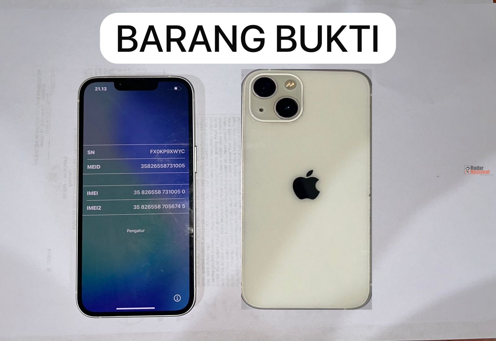 Polisi mengamankan satu unit iPhone 13 warna putih sebagai barang bukti. Sementara barang bukti lainnya masih dalam proses pengembangan.