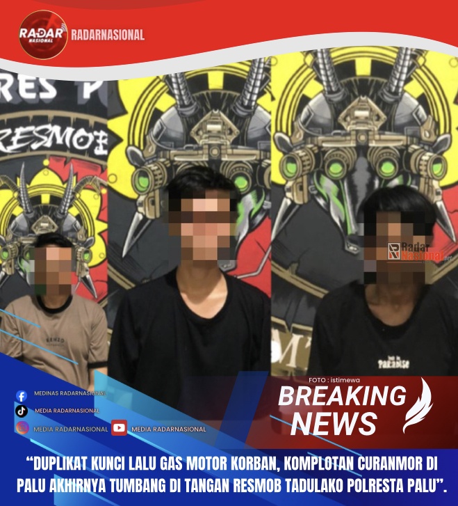 RadarNasional,Palu-Tim Resmob Tadulako Satreskrim Polresta Palu berhasil membongkar komplotan pencurian sepeda motor (curanmor) yang beraksi di Kota Palu. Tiga pelaku masing-masing berinisial MR, DJ, dan MK berhasil diamankan pada Senin (9/3/2026).