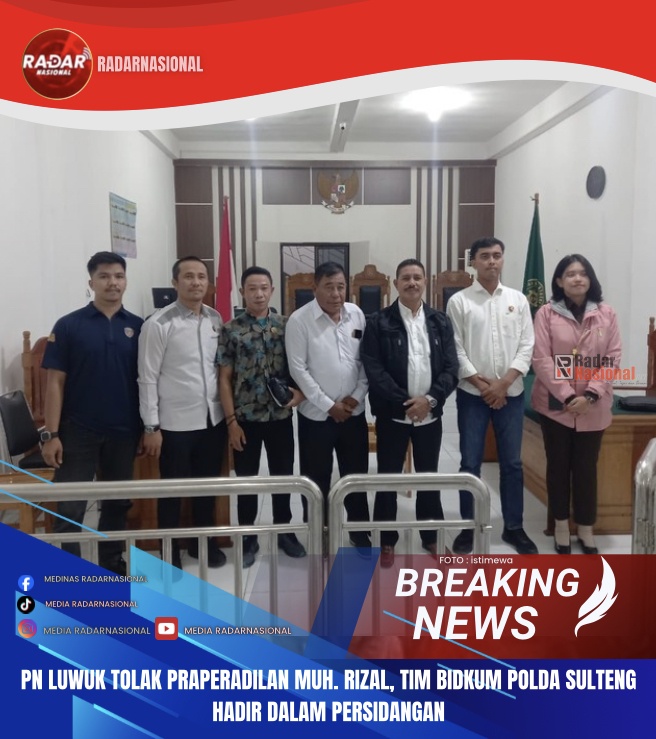 RADARNASIONAL,LUWUK – Pengadilan Negeri Luwuk menolak permohonan praperadilan yang diajukan oleh Muh. Rizal terkait penetapan dirinya sebagai tersangka dalam dugaan kasus penganiayaan dan pengancaman. Putusan tersebut dibacakan dalam sidang yang digelar pada Senin (9/3/2026) sore.