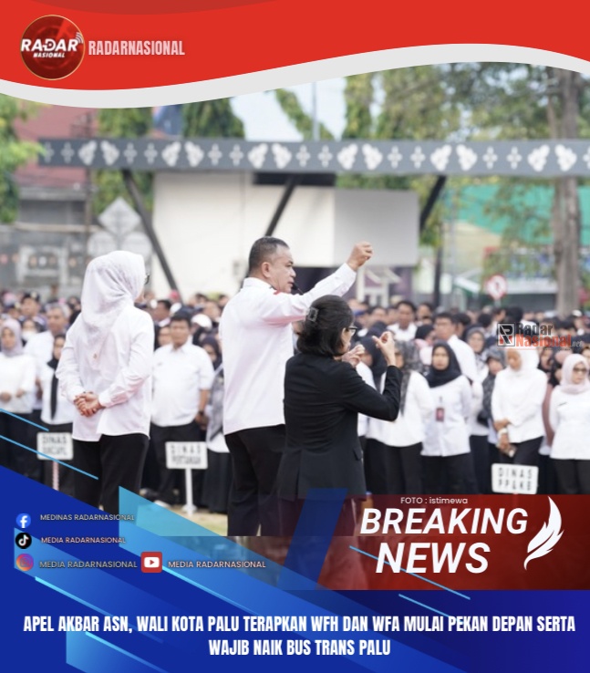 RadarNasional,Kota Palu — Pukul 06.00 WITA, Wali Kota Palu Hadianto Rasyid memimpin apel akbar bersama seluruh Aparatur Sipil Negara (ASN) di lingkungan Pemerintah Kota Palu, Jumat (10/04/2026), di halaman Kantor Wali Kota Palu.